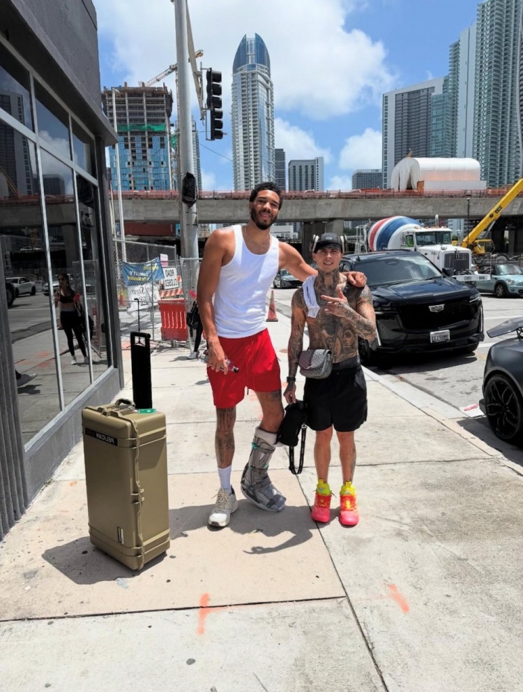 A quick recovery 🙏Tatum took a photo with fans on the street and was still wearing heavy protective boots on his right foot