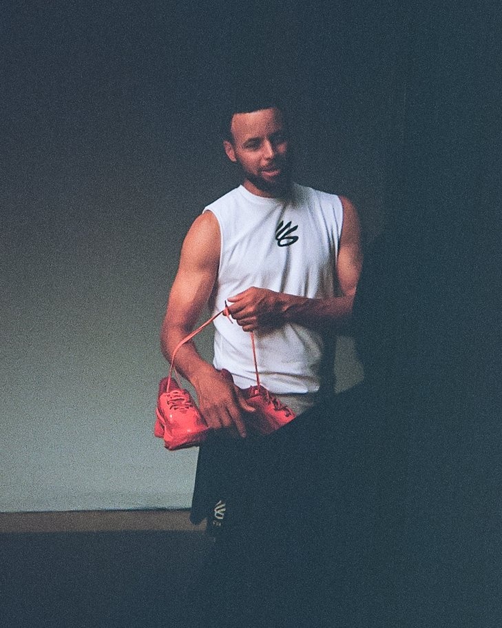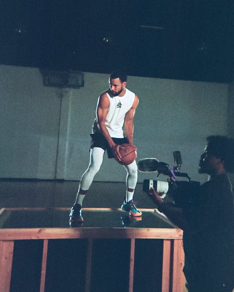 Curry updated his social media and reviewed the behind-the-scenes photos of his previous advertisements with Olivari for his Curry brand sneakers Curry Series 7.