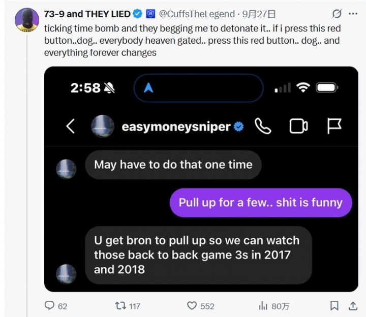 @CuffsTheLegend exposed the private message and wrote: "Time bomb, they begged me to detonate it...If I press this red button...everyone wants Go to heaven... Press this red button... Everything has changed forever."