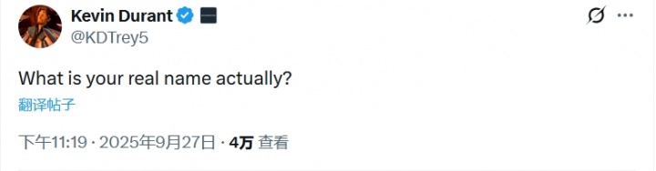 Durant continued to reply: "So what is your real name?"