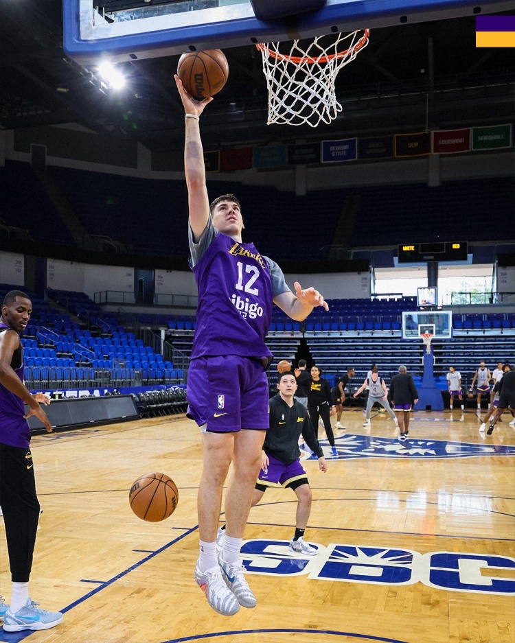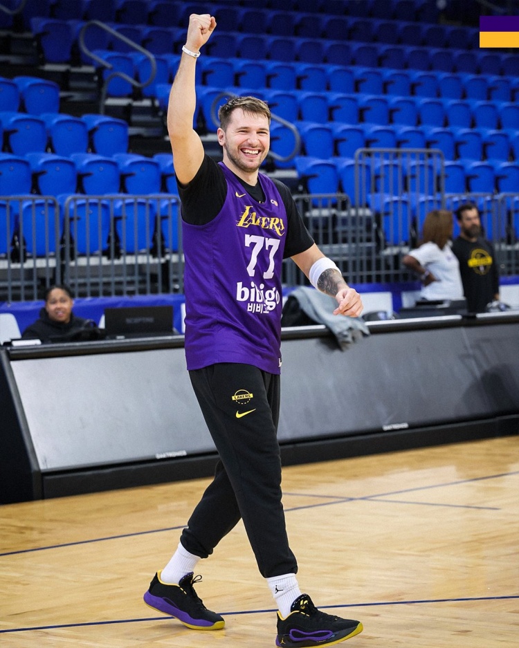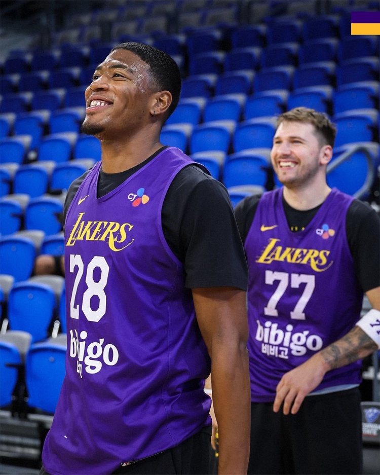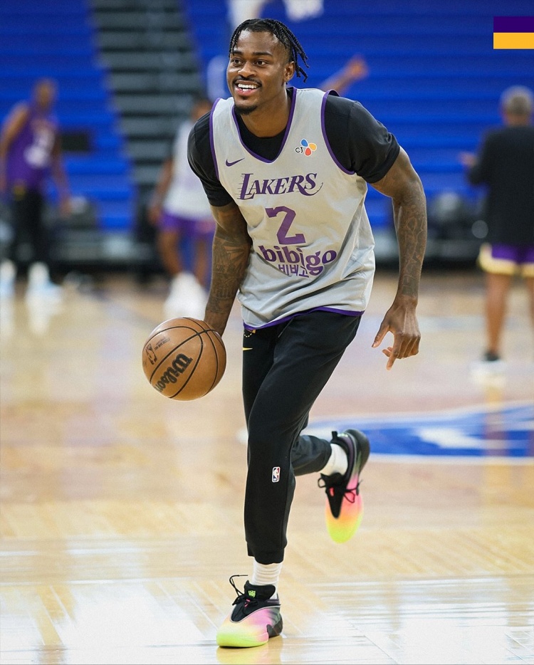 Today, the Lakers’ official Twitter posted a set of team training photos.
