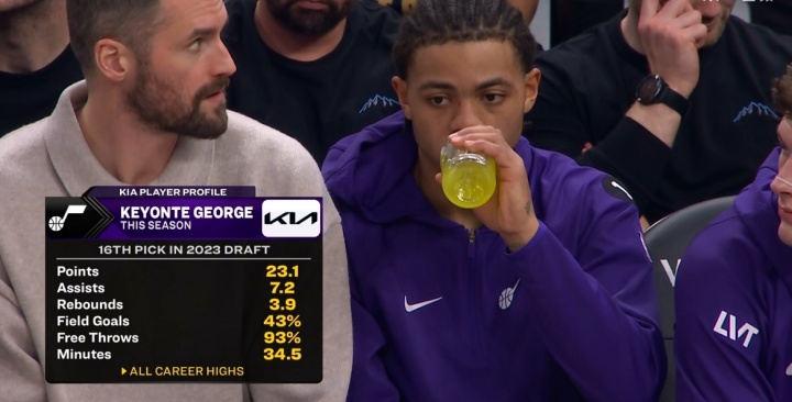 Warriors VS Jazz broadcast screen: George, the 16th pick in 2023, has career highs in all statistics