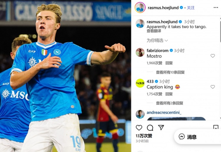 After Napoli reversed Genoa 2-1, goal-scoring hero Hoylen updated social media.