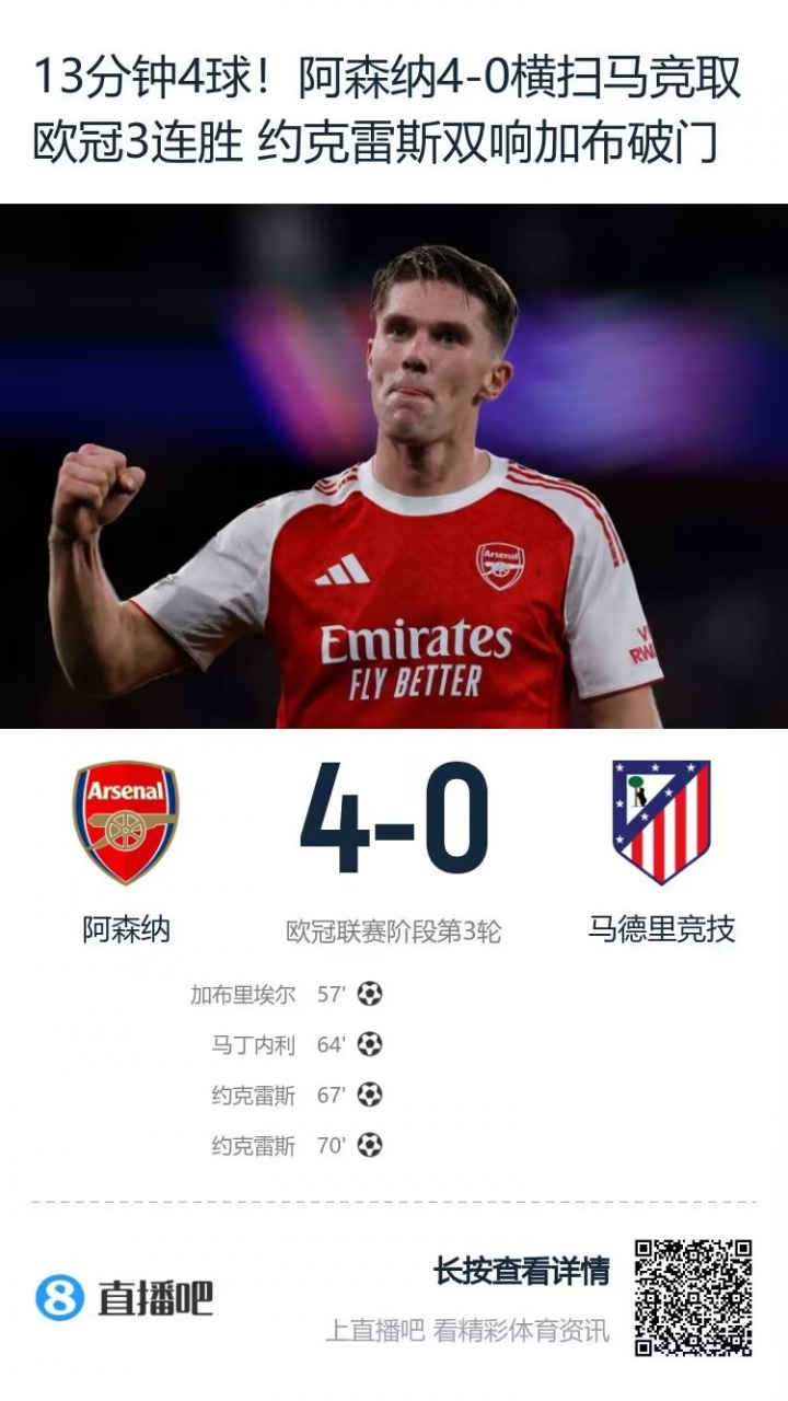 King of Madrid! Arsenal beat Real Madrid 5-1 on aggregate last season and beat Atletico Madrid 4-0 today 2:25pm, 22 October 2025 Football Mini-game recommendations:Disney Super Arcade Last:Zaccardo: I joked about why I didn’t choose Cannavaro, but he actually became the national team coach Next:CIES Best Youth Training Club Ranking: Benfica, Barcelona, River Plate top three, Real Madrid ninth Recommend News RMC: Bayern, Liverpool and Marseille all have the interest of Lyon s 20-year-old Leave it to play Barcelona? Vitinia seemed to be replaced without injury in 35 m Cross was awarded the Mecklenburg Medal of the highest honor in his hometown. Hi Harman talks about Waltermad: Premier League is a different league, and Wiltz al