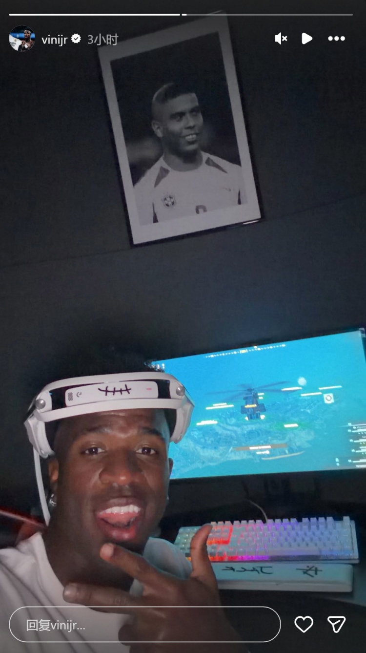 Vinicius plays games in his free time. He posted photos on social media, and a poster of Brazilian legendary star Ronaldo appeared on the photo.